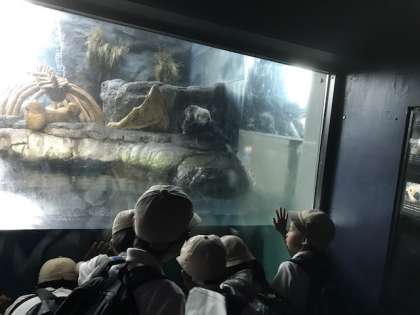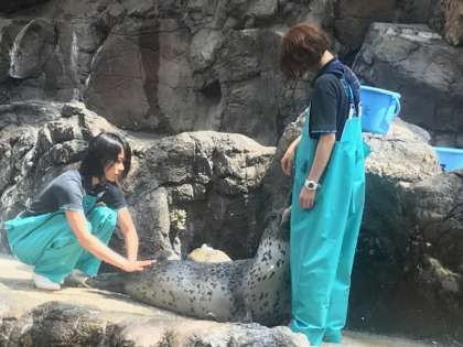 ラッコとアザラシに大興奮してます。かなりひとが多いです。班行動大丈夫かな?