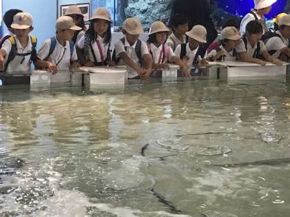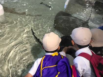 ふれあいプールでサメやエイにさわりました。急に顔が出て来てびっくり??