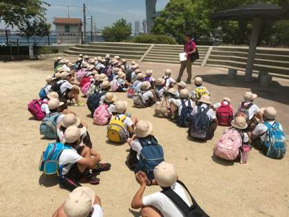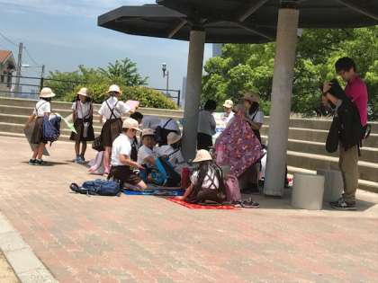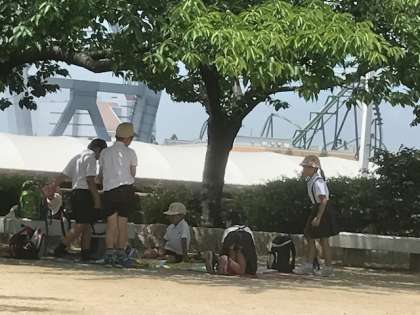 日本で2番目に低い天保山に登山して、いよいよお待ちかねの御昼ご飯です。班で仲良く食べましょう。