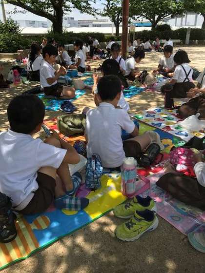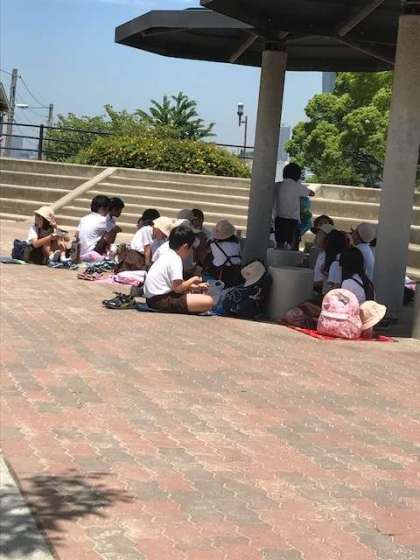 お弁当食べて、楽しいオヤツタイムです。みんな上手にお買い物していますね。ゴミを出さずに食べてます。