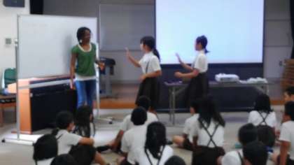 アクティビティでは、サイコロを使って出た目の合計を英語で答える活動をしていました。