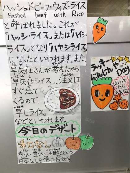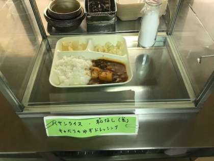 ハヤシライス、キャベツのゆずドレッシング、和梨、牛乳