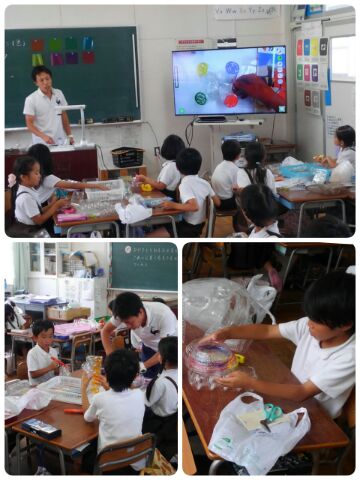 途中、書画カメラを活用しながら、個人の工夫を全体で共有した後、再びそれぞれが製作を始めました。