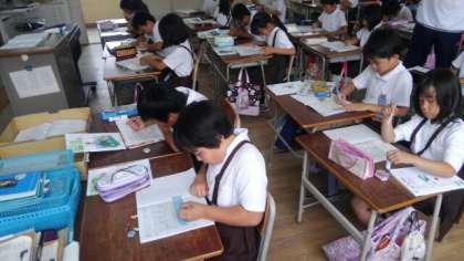 自分で作った問題をペアで交換しながら、学び合っていました。