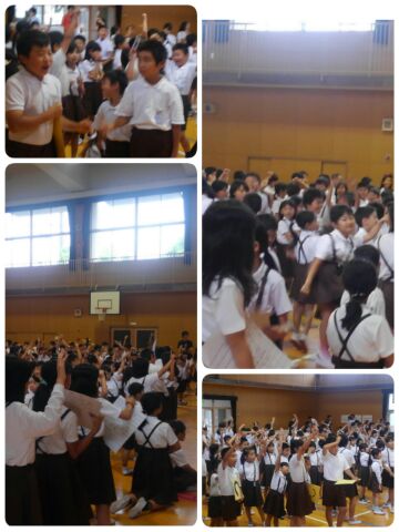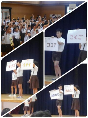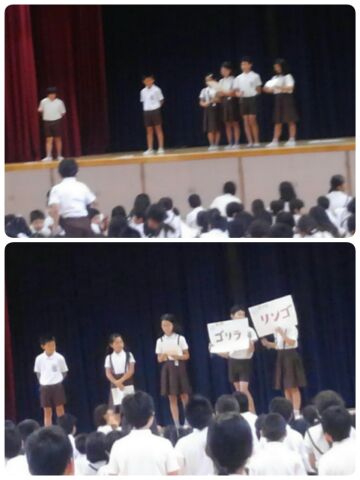 今日は、なかよし集会です。講堂でステレオゲームをしています。
