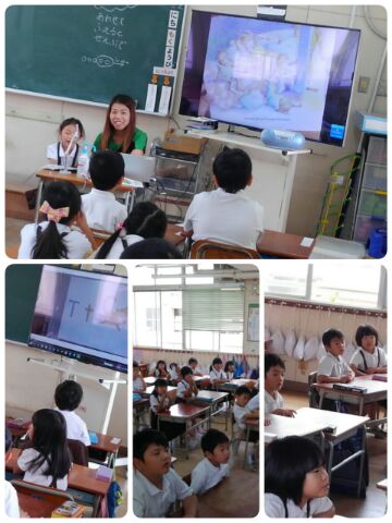 3年生は、ジングルや絵本の音声を聞いて、音声に慣れ親しんでいます。絵本や映像を見て英語で言っています。