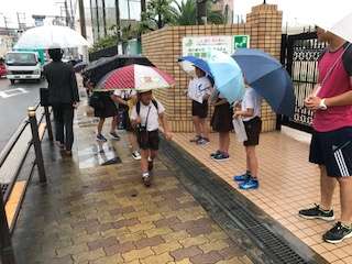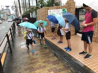 雨の中、傘をさしながら、梅雨空を吹き飛ばす、元気なあいさつの声が響いていました。