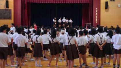 今日のなかよし集会では、水族館というゲームをしています。集会委員会さんの進行で全学年児童がふれ合っています。