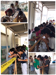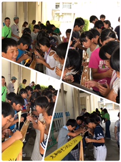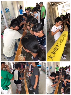 お昼は、PTAの方々にも協力していただき、流しそうめん!手作りの流しそうめん台を作ってくださいました。ありがとうございます。