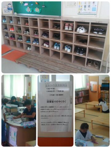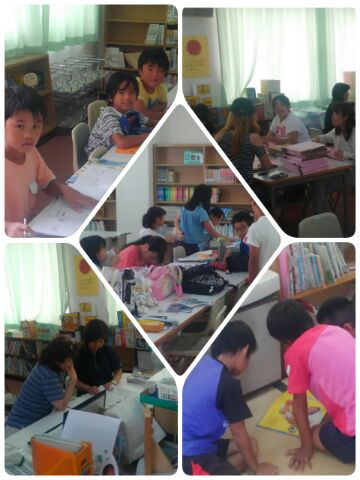 プールに入る前や、プールに入った後に、学習をしたり、本を読んだり、返却・貸出したりしながら、児童は図書館を利用しています。