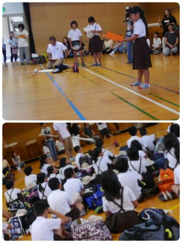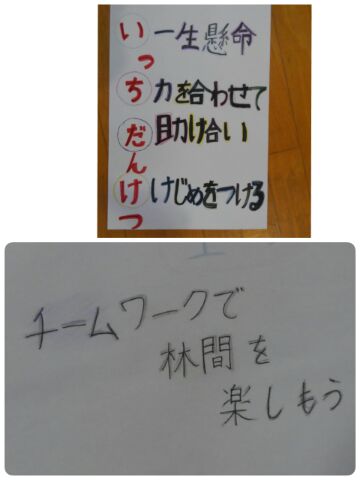出発式では、代表児童の司会のもと、校長先生のお話、林間学習のめあての確認、付添教員の紹介、学年主任の諸注意、児童代表あいさつと順に行われました。