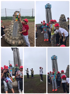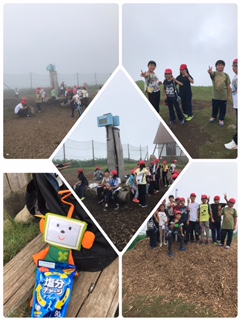 山登りにチャレンジした全員が無事に登りきりました。雲?霧?の中のため、周りは真っ白!