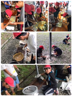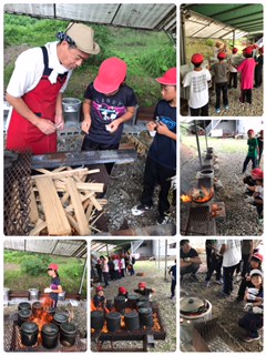 いよいよ火をおこします。初めてマッチをつける子もいました。