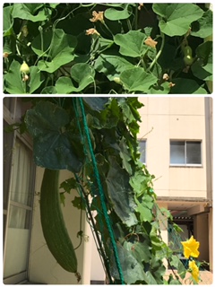 この夏休みに、ひょうたんやヘチマもしっかり育ち、実をつけ始めました。