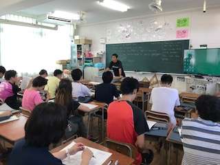 夏休み最後の日、先生方は、明日からにそなえて、英語研修会を行いました。