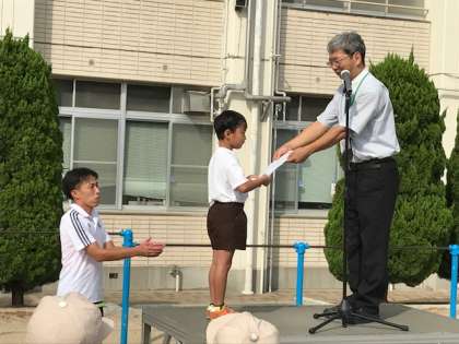 田中先生からは、規則正しい生活をしましょう。暑いので水筒を持ってきましょうと呼びかけがありました。