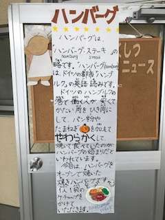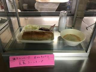 ハンバーグも、子どもたちに人気メニューです。豆乳コーンスープも、美味しいです。