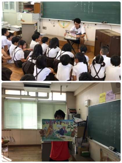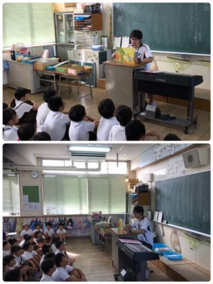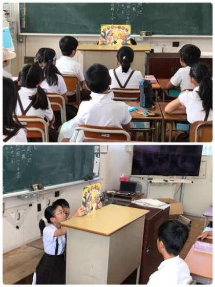 中学年は、担任の先生が読んだり、学級の係の子が読んだり、違う担任の先生が読んだりと様々な方法で取り組んでいました。