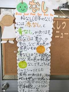 です。デザートに梨がついています。暑い日が続きますが、秋を感じます。