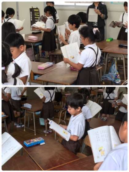 音読では、2年生は大きな口でハキハキと詩を読んでいます。