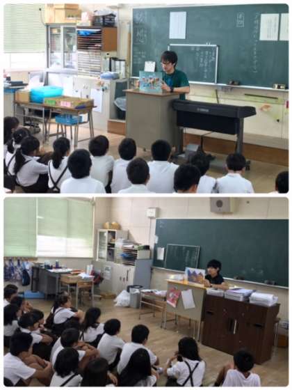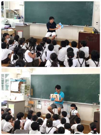 今日は2年2組に5年生の鈴木先生が読み聞かせを行っていました。