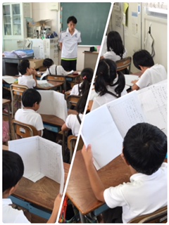 1組は、宝物についての発表をするための練習をしていました。この後タブレットを使ってさらに工夫していきます。