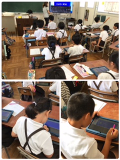 2組は、タブレットを使いこなす練習をしていました。自分の名前を手書きで読み取らせることに挑戦していました。