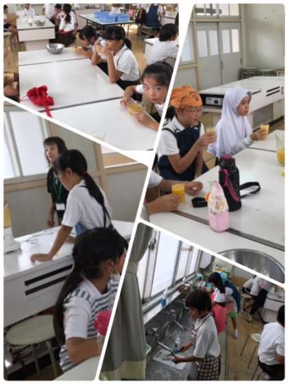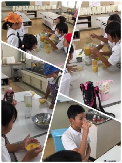 今日はミックスジュースをグループで作りました。どのグループもみんなで協力し合った結果、おいしいジュースを飲むことができました。