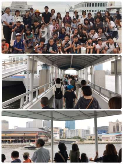 > 中庭で集合し、PTAの会長様のお話をいただいた後、バスで神戸港へ移動しました。