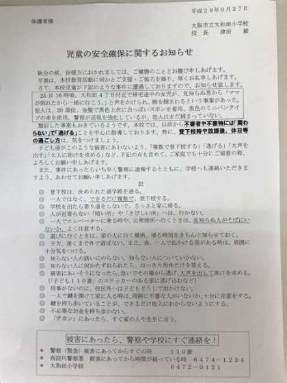 子どもたちには、今一度、事件や事故にあわぬよう先生方から指導していただいています。