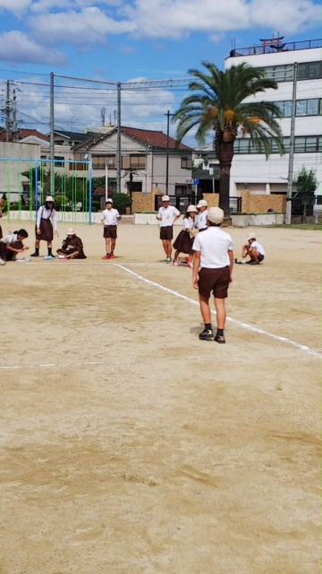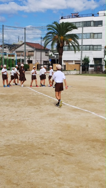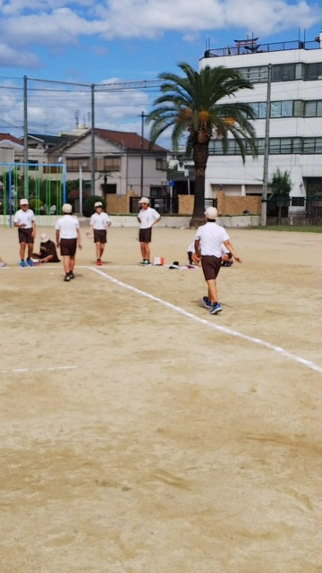 > 算数の学習で習った早さの計算を使って、自分の歩く速さや走る速さを求めています。20mを進むのにかかった時間を、走る、速歩、歩くの三種類で調べています。雨でなかなかできなくて、待ちかねた一時間、とても仲良く楽しそうです。