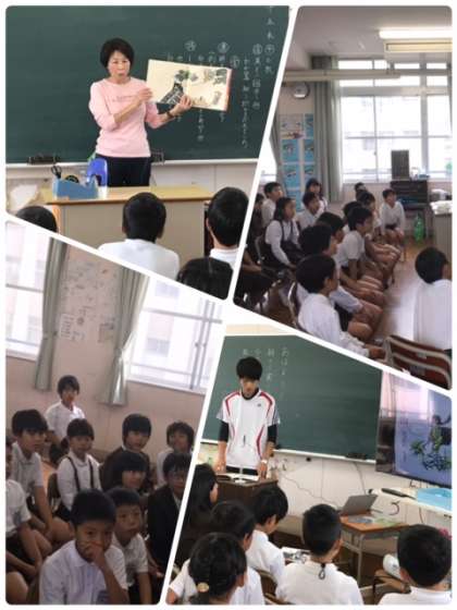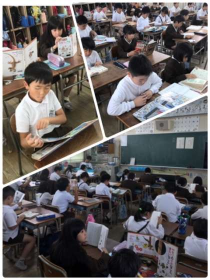 4年1組は下山先生が読み聞かせをしてくださっています。