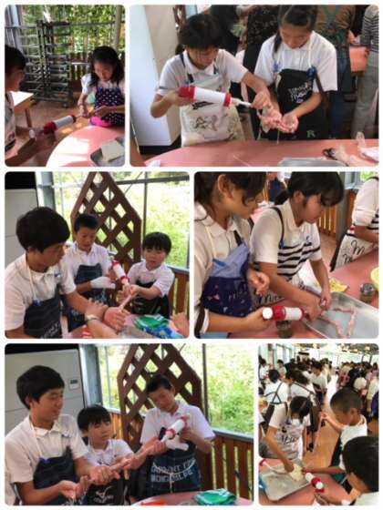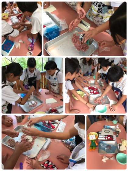 お腹がいっぱいになったところで、昼からはウィンナー作りに協力して取り組みました。