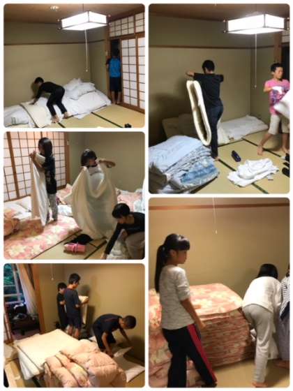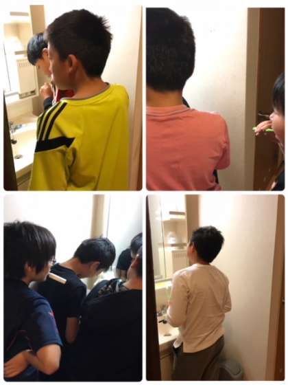 歯磨き、洗顔、布団の片付けなどをして、外で朝のつどい。しっかり身体を動かして、今日も一日元気に過ごします!