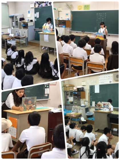 今日の読書タイムは、1年生から5年生には図書委員会が読み聞かせをしにいきました。しっかり上手に読めていました。6年生は、1組は担任の先生が読み聞かせを、2組は先生も一緒に全員自分で読書を楽しんでいました。