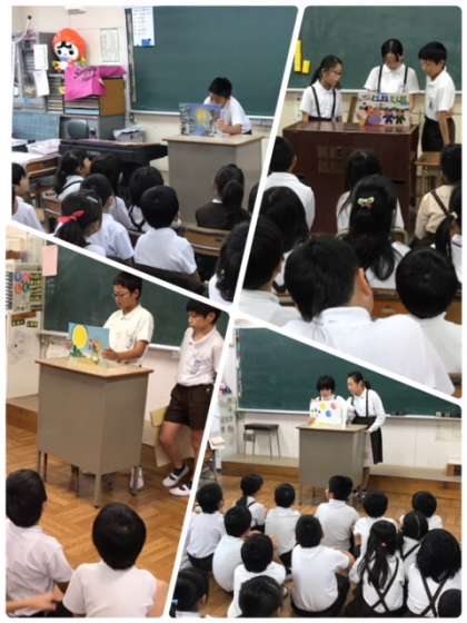 今日の読書タイムは、1年生から5年生には図書委員会が読み聞かせをしにいきました。しっかり上手に読めていました。6年生は、1組は担任の先生が読み聞かせを、2組は先生も一緒に全員自分で読書を楽しんでいました。