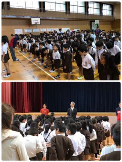 生活指導の先生からは、あいさつを元気よくしましょう。寒くなってきているので、上着で体温調節して体調管理をしましょう。そうじを頑張って行っているので、とても学校がきれいです。引き続ききれいな学校にしましょう。とお褒めの言葉をもらいました。