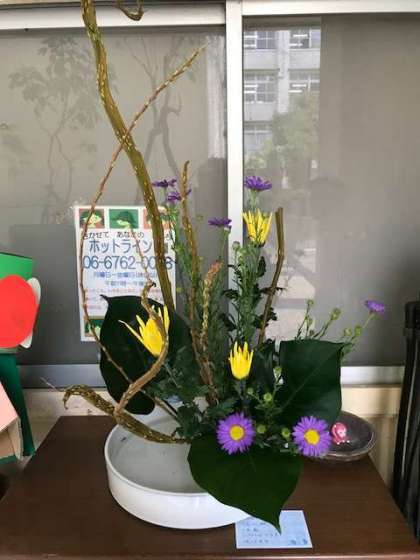生涯学習ルームの生け花の先生に、校長室の前にお花をいけていただいています。