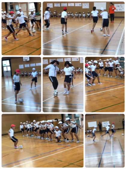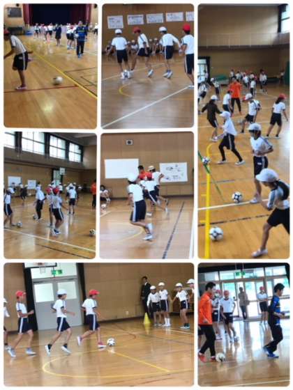 フットサルは特に足の裏を使うのが大切だそうです。ボールに慣れた後は、早速試合をしました。クラスが1つになり、盛り上がりました。さすが、プロ!という技もみせていただき、とてもいい体験になりました。