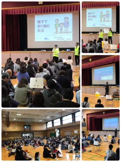 その間講堂で、保護者の方には、あおぞら財団様、三好先生から、防災についてのお話を聞いていただきました。