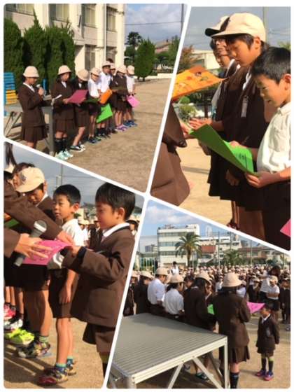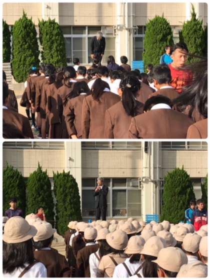 校長先生からは週末にあった台風について、全校たてわり遠足について、思いやりについてお話がありました。