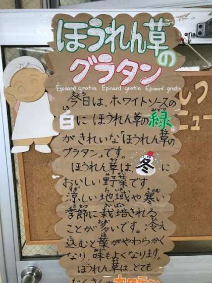 グラタンも、子どもたちの人気メニューの一つです。ほうれん草も入り栄養満点です!