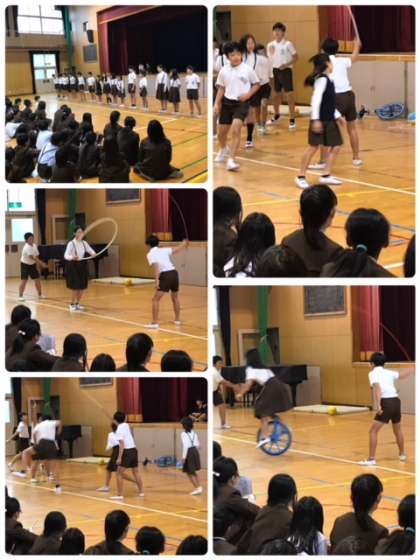 さすが運動委員会! 上手な見本でたくさんの拍手につつまれていました。