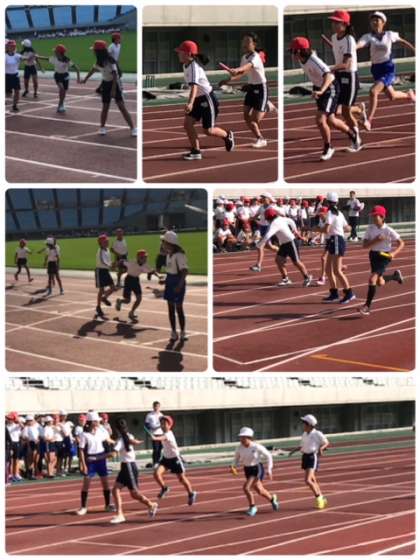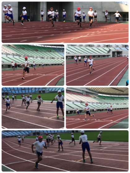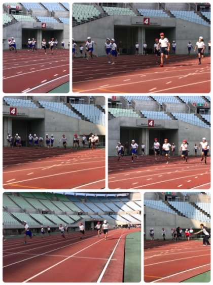 午後からは、世界陸上も行われた長居陸上競技場は移動し、100メートル走、400メートルリレーに挑戦しました。