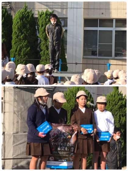 最後に児童会から、ユニセフ募金の呼びかけがありました。このユニセフ募金は淀中学校校区で行われています。皆さん、ご協力お願いします。