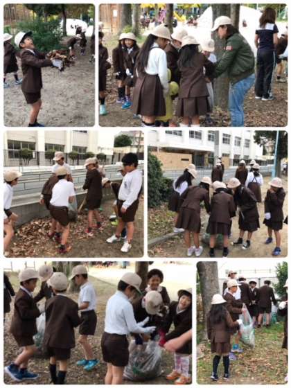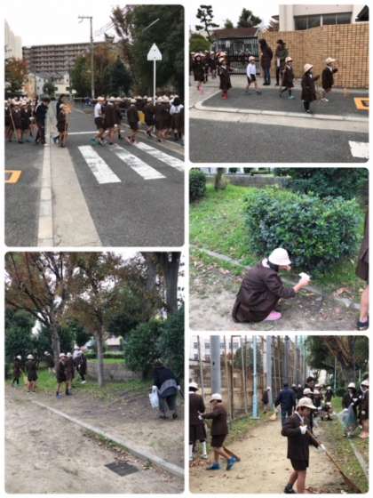 全校朝会に続いて、ふれあい清掃に、全学年で大和田中央公園に行きました。
