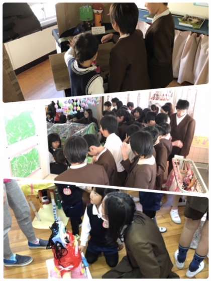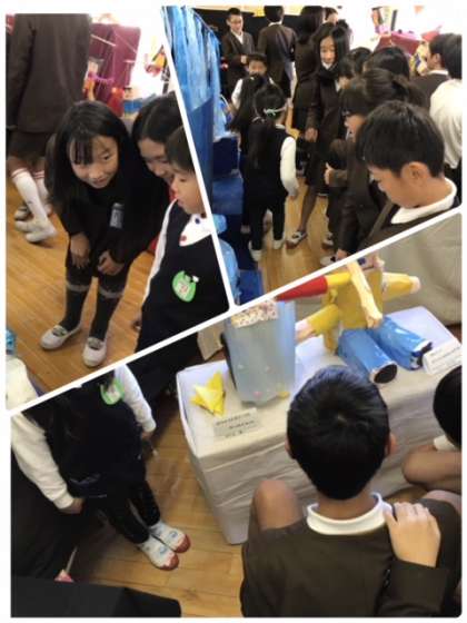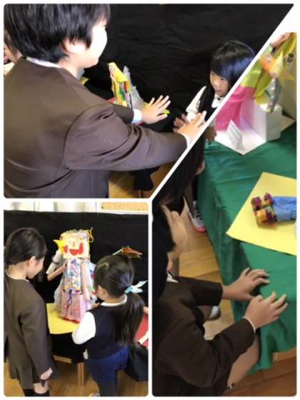 1年生が鑑賞した後は、5年生が幼稚園に行き、年長さんと一緒に作品を鑑賞しました。