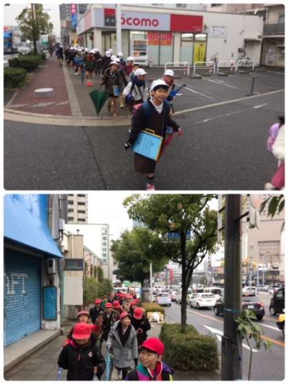 天候が心配でしたが、雨も降らず4年生は大阪市立科学館に校外学習に出かけました。念のために傘は持っていっています。