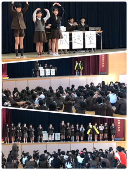 本日のなかよし集会は、放送委員会の発表でひた。クイズ形式で、仕事内容やみんなに気をつけてほしいことを伝えていました。