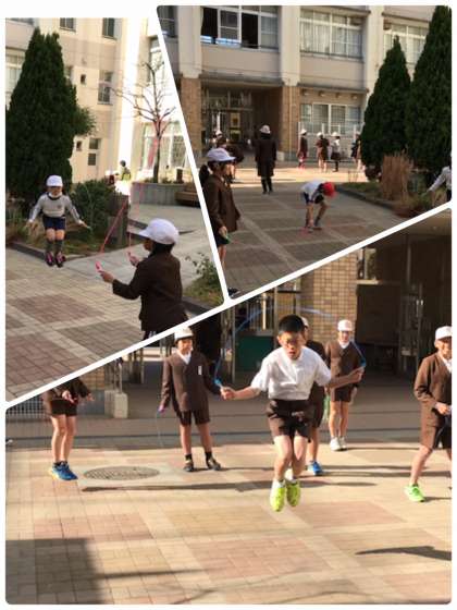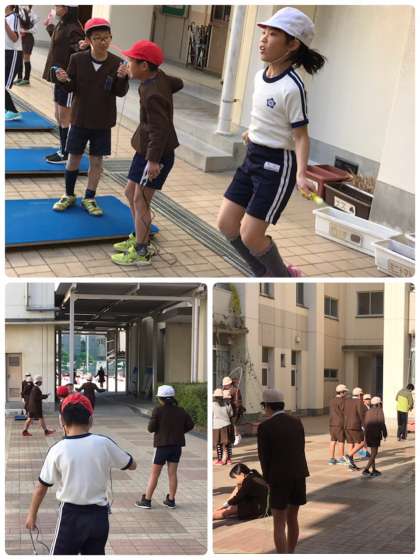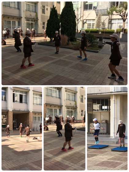 低学年のチャレンジ二重跳び大会をしてる時、高学年は中庭で二重跳びの練習をしていました。